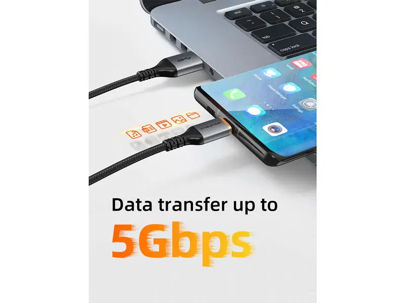 Soporte totalmente de soporte USB 3.0 Velocidad estándar de 5 Gbps. Con este cable de datos USB-A a USB-C, podrá transferir archivos, imágenes y videos de manera rápida y fácil.