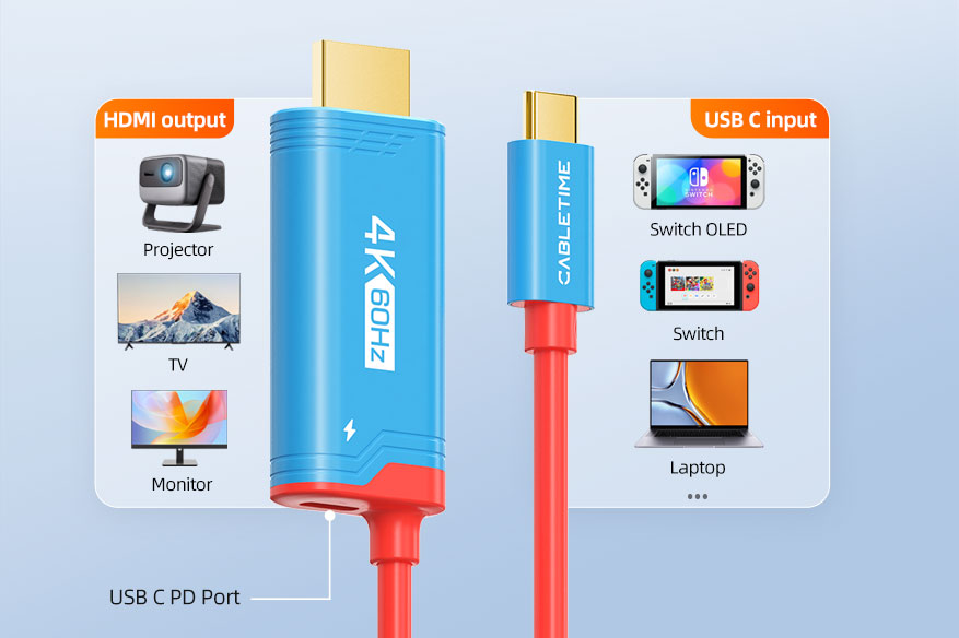 Cable CABLETIME CC17L USB-C a HDMI 4K 60Hz PD100W para Nintendo Switch 2mts