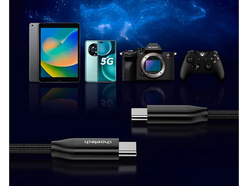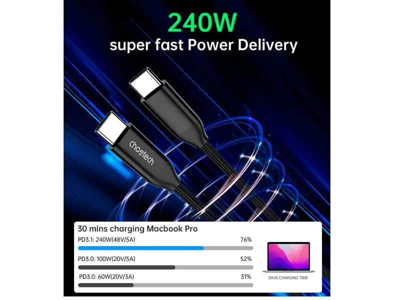 El Cable Choetech XCC-1036 USB-C a USB-C proporciona una carga rápida con una potencia de salida de 240W para sus teléfonos, tabletas, computadoras portátiles y otros dispositivos habilitados para USB-C.