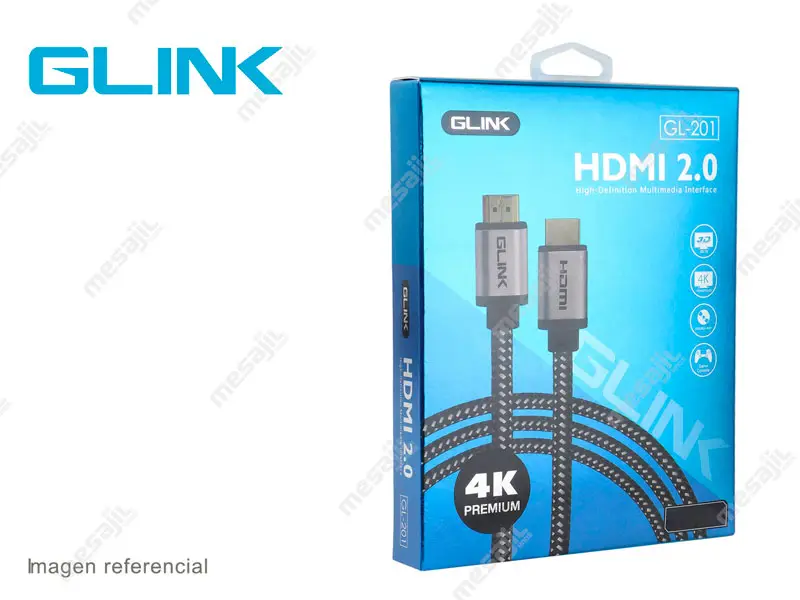 El Cable Glink modelo GL-201 admite una resolución 4K Ultra HD con HDMI 2.0. Cable trenzado de 3 metros de largo. Protegido con funda trenzada de nailon HDMI macho a HDMI macho.