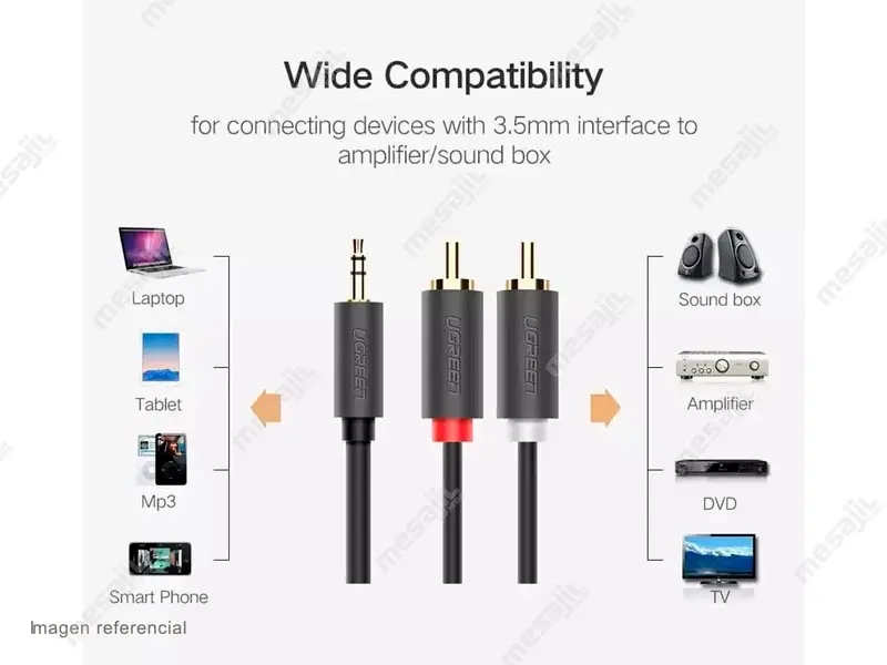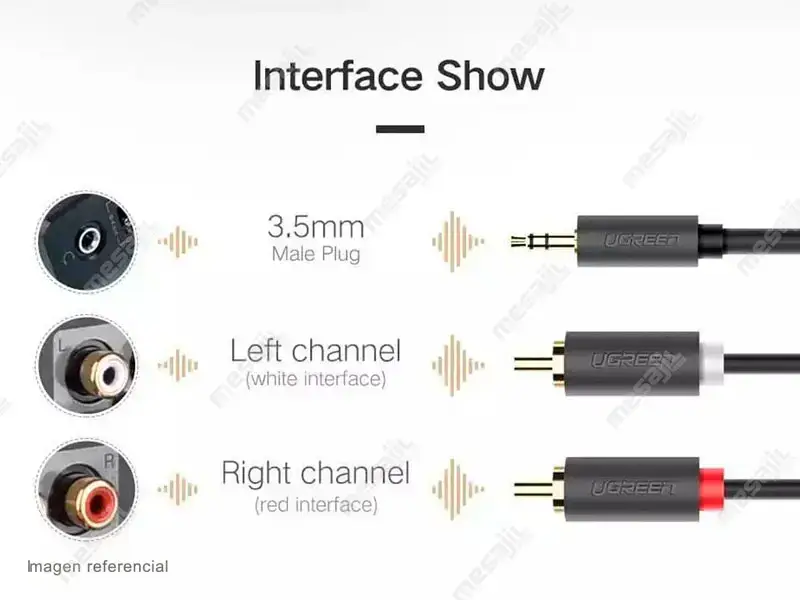 Cable UGREEN de Audio 3.5mm estereo a RCA 5mts (10513) Gris