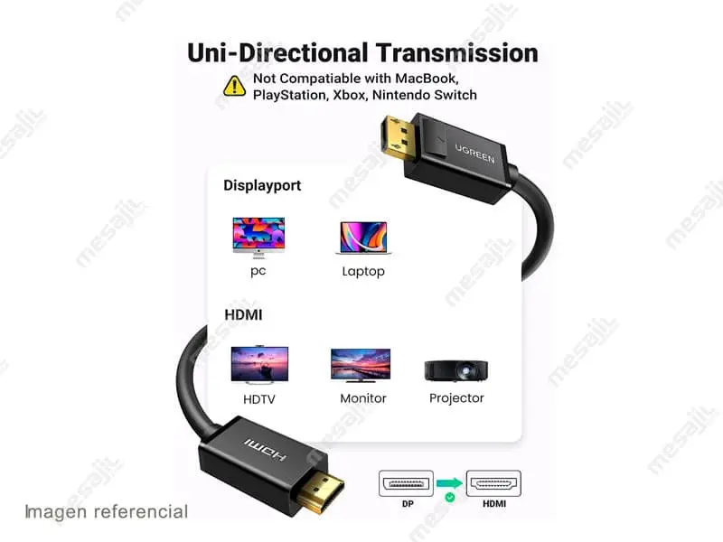 Cable UGREEN Displayport macho a HDMI macho (10203) 3mts