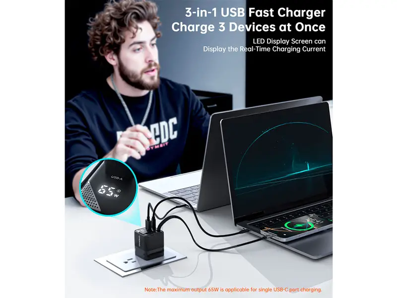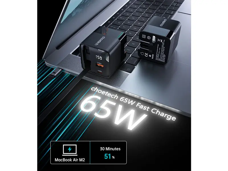 El Cargador de pared PD6091 CHOETECH GaN de 65W ha sido diseñado con una solución de carga potente, compacta y eficiente.