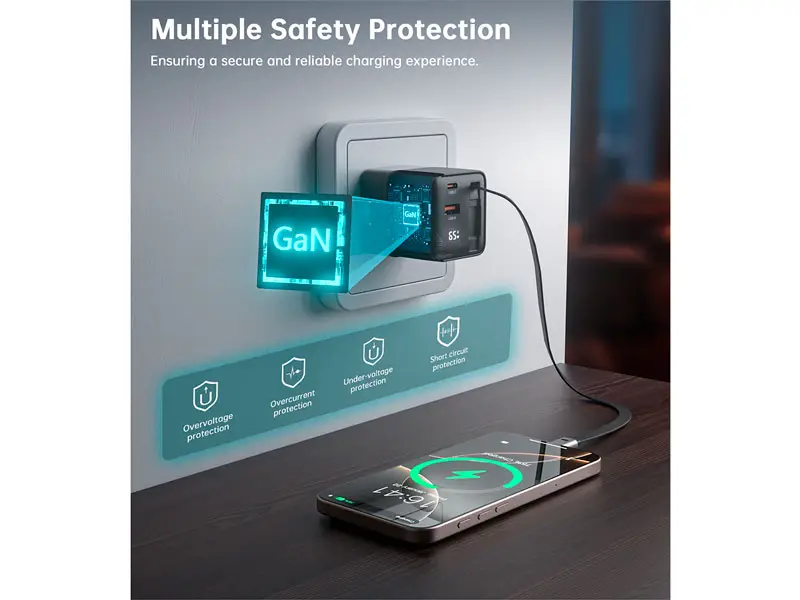 El secreto detrás de su alto rendimiento está en la tecnología GaN (nitruro de galio), una innovación que permite una mayor eficiencia energética y una mejor disipación del calor. A diferencia de los cargadores convencionales, el PD6091 se mantiene frío incluso cuando está funcionando a máxima capacidad, lo que se traduce en una mayor durabilidad y seguridad para tus dispositivos.