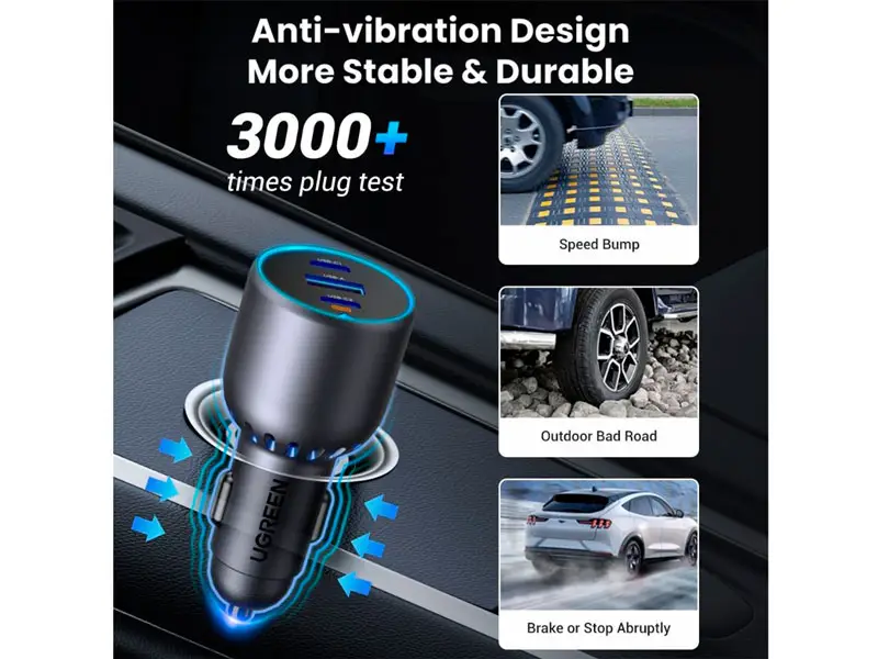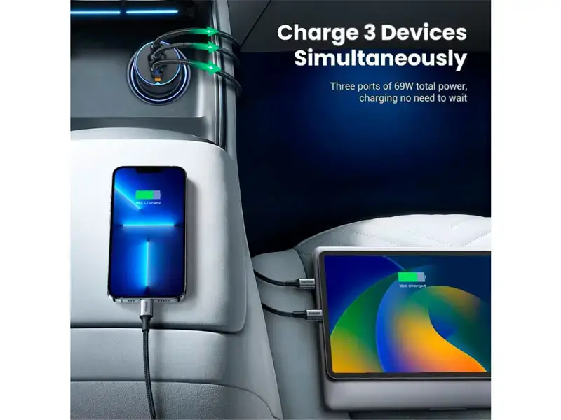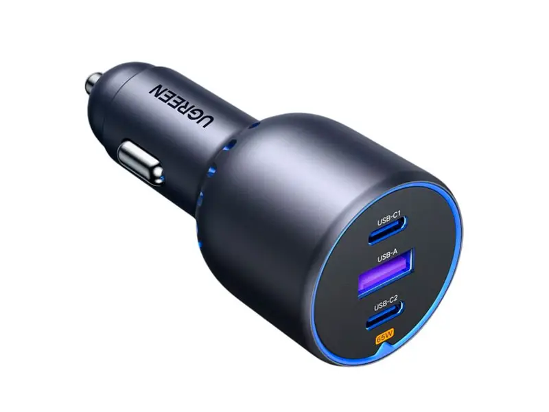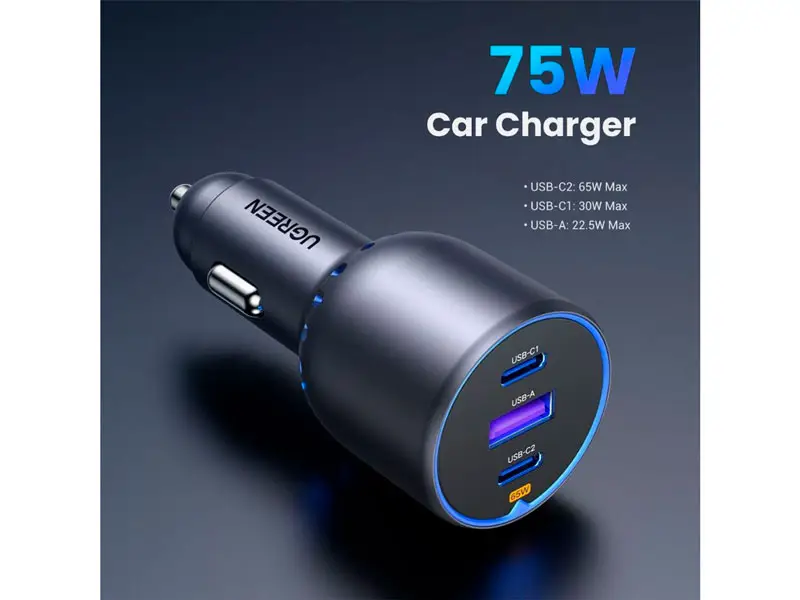 Cargador UGREEN P/auto USB-C x2 & USB-A 75W (35024) Black