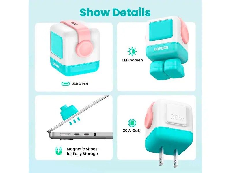 FUENTE DE IMAGEN: https://ugreenonline.com/ugreen-45089-30w-1c-nexode-rg-usb-c-robot-gan-fast-charger-pink-blue-robot-us-plug-cd359-10045089.html