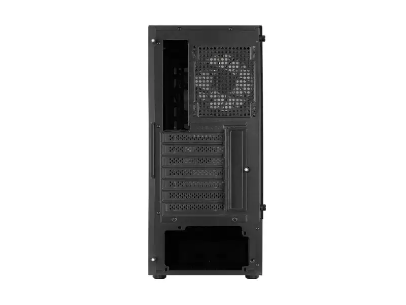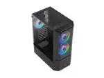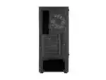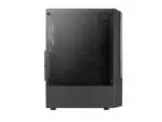 Gabinete con acabado de pintura metálica gris espacial con un diseño de panel frontal acrílico. Este torre media de alto rendimiento incluye un panel lateral de vidrio templado para mostrar el interior del equipo.