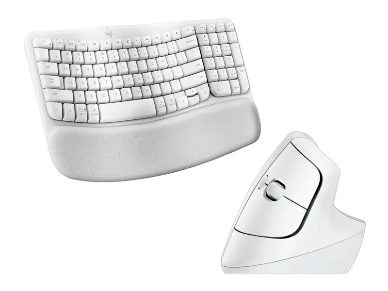 Combo Logitech Teclado ERGO Wave + Mouse Lift Vertical Ergonomic Wireless White