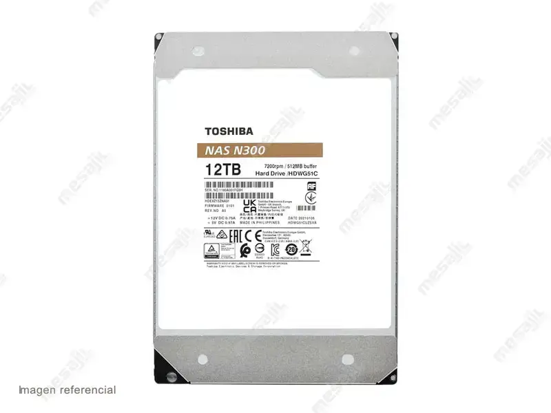 Part number: HDWG51CXZSTADisco Duro de 12TB Interno Toshiba N300 NAS PRO 7200rpm