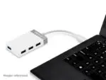 Conecte con facilidad hasta cuatro dispositivos USB-C a una computadora de escritorio o PC portátil habilitados para USB 3.0.