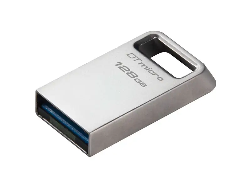 La Memoria USB 3.2 128GB Kingston DT MICRO Ultra Slim ultracompacta y ligera, ideal como espacio de almacenamiento plug-and-stay, compatible con ordenadores, impresoras, consolas de juegos y mucho más.