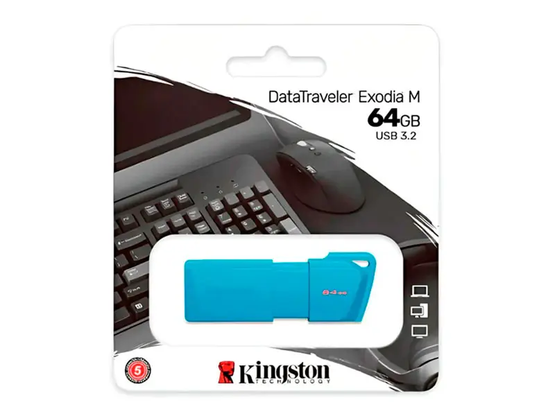 La Memoria USB 3.2 64GB Kingston DataTraveler Exodia Celeste es una solución de almacenamiento compatible con USB 3.2 Gen1 para portátiles, equipos de sobremesa, monitores y otros dispositivos digitales. DT Exodia M permite rápidas transferencias y facilita el almacenamiento de documentos, música, vídeo y mucho más. Su práctico diseño la convierte en una solución de almacenamiento ideal tanto en el trabajo como en el aula o en el hogar.