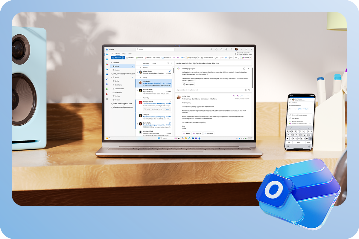 Usa Copilot para resumir largas cadenas de correos electrónicos y ayudarte a redactar y reescribir correos electrónicos.