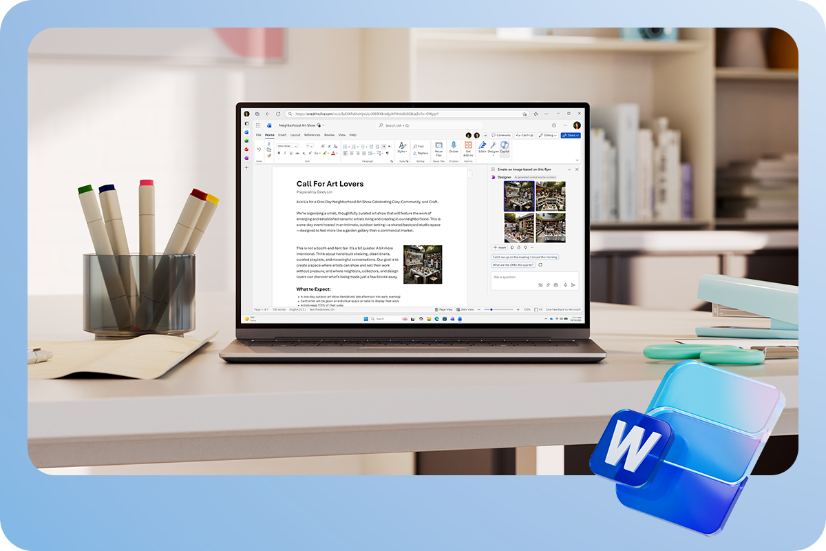 Usa Copilot directamente en tu aplicación Word para superar el bloqueo del escritor y compartir tus pensamientos e ideas con confianza.