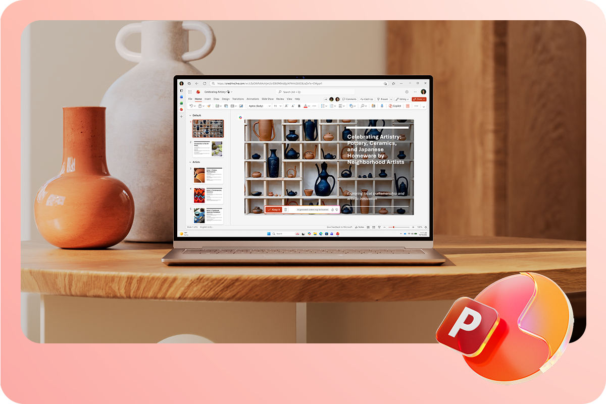 Con una simple indicación, Copilot en PowerPoint puede crear diapositivas, generar imágenes e incluso añadir notas del ponente.