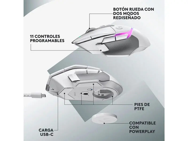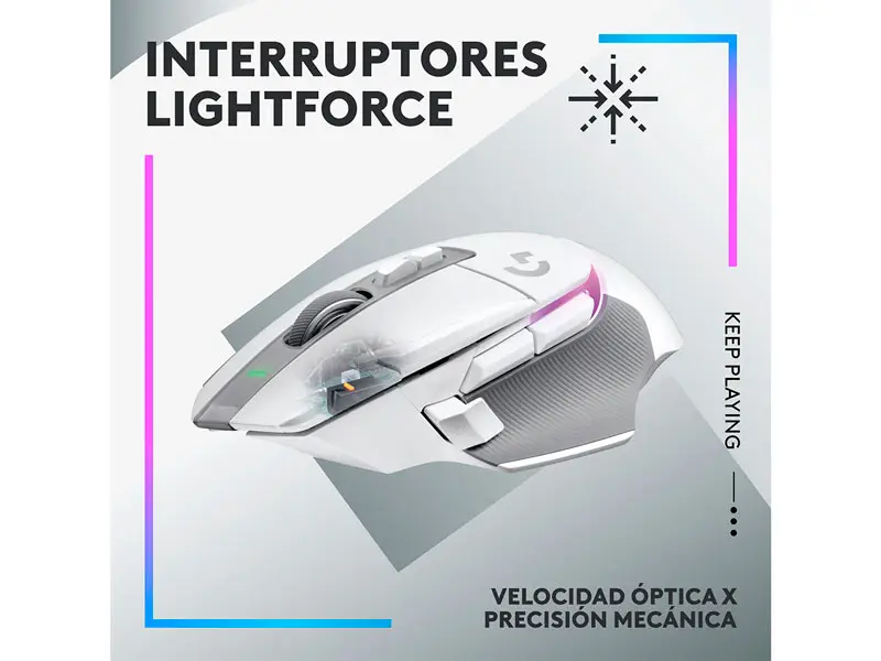 Part number: 910-006169Mouse Gaming Logitech G G502 X PLUS LIGHTFORCE/LIGHTSYNC 25K DPI RGB Blanco