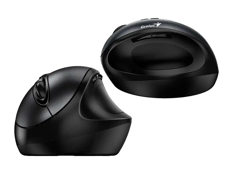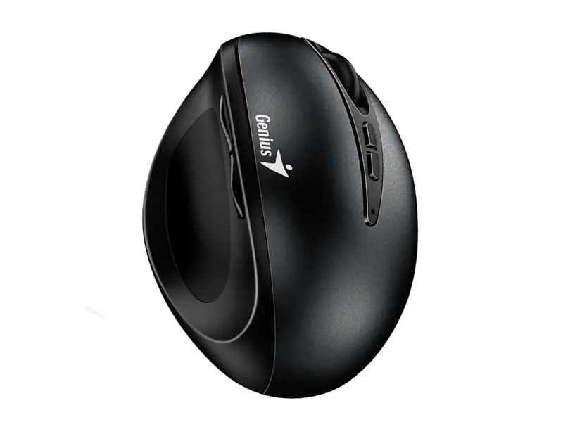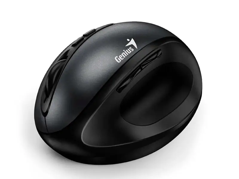 El mouse silencioso ergonómico vertical inalámbrico Genius Ergo 8300S fomenta una postura más natural para la mano derecha, ayuda a aliviar la fatiga y reduce la tensión muscular en la región del antebrazo y el hombro.