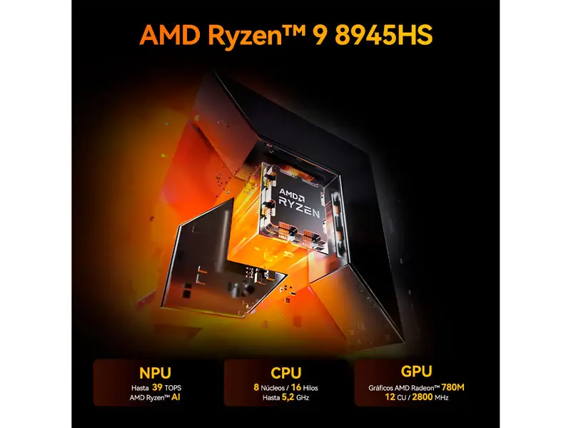 PROCESADOR | AMD Ryzen 9-8945HS (8 núcleos, 16 subprocesos, 16MB de caché L3, 4.0 GHz - 5.1 GHz, TDP: 45W) | ||