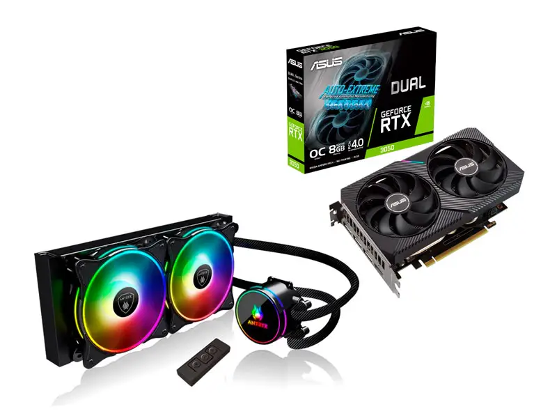 Memoria DDR5 16GB FURY Beast 5200MHz KF552C40BB-16 | Unidad SSD Interno M.2 2280 1TB Kingston NV3 NVMe PCle 4.0 | Tarjeta Grafica ASUS NVIDIA GeForce RTX 3050 8GB GDDR6 Auto Extreme Dual OC | Cooler CPU Antryx Triton EVO 240 ARGB Enfriamiento liquido Black (AWC-TE240K) |