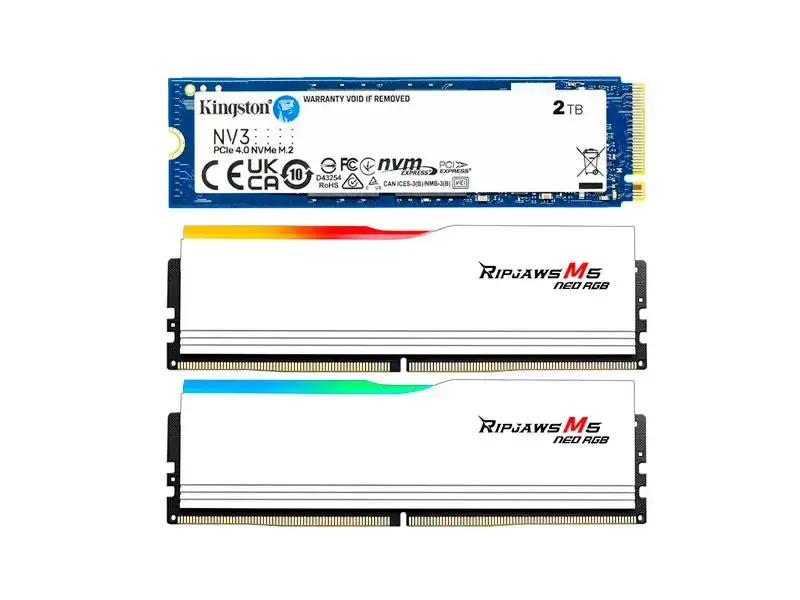Unidad SSD Interno M.2 2280 2TB Kingston NV3 NVMe PCle 4.0 | Memoria DDR5 G.SKILL Ripjaws M5 Neo RGB 32GB (16*2) 6400 MHz CL32 White | Tarjeta Grafica MSI NVIDIA GeForce RTX 3050 VENTUS 2X XS 8GB GDDR6 | Cooler CPU Antryx Triton Vision 360P ARGB Enfriamiento liquido Black (AWC-TV360K) |