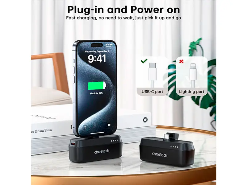 Power Bank CHOETECH B740-CCBK 5000mAh USB-C – Energía esencial en tamaño bolsillo
