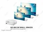 El proyector puede proyectar grandes imágenes de hasta 300 pulgadas, mucho más grandes y fáciles de instalar que las pantallas comerciales.