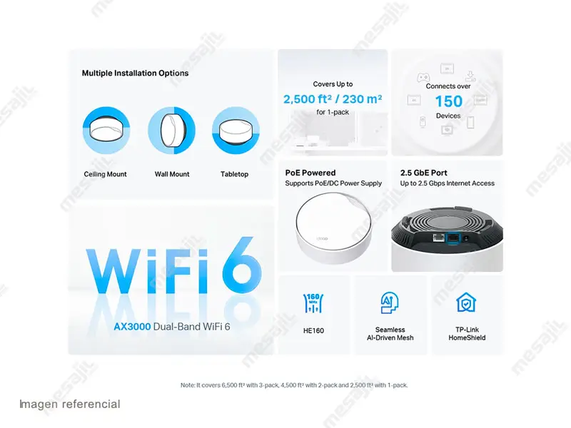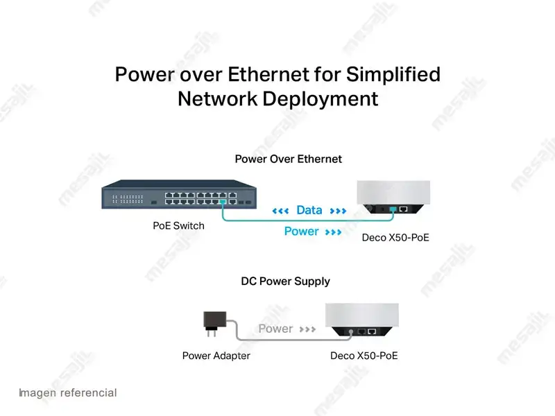 Deco se puede montar en una pared, techo o caja de conexiones utilizando los tornillos proporcionados. Un rendimiento excepcional con un diseño compacto garantiza una instalación WiFi sencilla y ahorra espacio. La apariencia elegante hace que Deco X50-PoE con un cuerpo delicado lo haga perfecto para integrarse en diversas decoraciones del hogar.