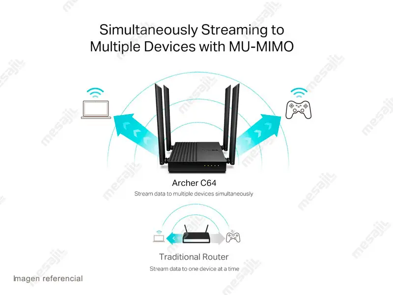 WiFi AC1200 con MU-MIMO, establece múltiples conexiones simultáneas para que disfrutes de velocidades más altas y mayor estabilidad. No más congestión de ancho de banda ni latencia. Disfruta de entretenimiento sin interrupciones en todos tus dispositivos, sin demoras.