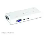 El Kit de KVM switch USB de 4 puertos le permite gestionar cuatro computadoras con un sólo equipo de teclado, monitor y ratón. ¡Se conecta entre dos computadoras con solo presionar un botón! Incluye dos juegos de cables KVM individuales junto con el KVM switch, de modo que los usuarios puedan empezar a controlar los 4 computadoras de forma instantánea.