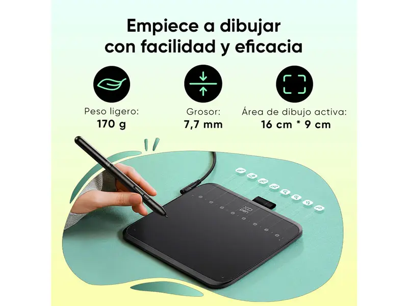 El diseño de borde ultra estrecho y curvado proporciona un área de dibujo espaciosa y reduce la fatiga de la muñeca. Junto con 8 teclas de atajo suaves y un lápiz manejable, puede dominar fácilmente las habilidades de dibujo en una tableta con eficiencia y comodidad.