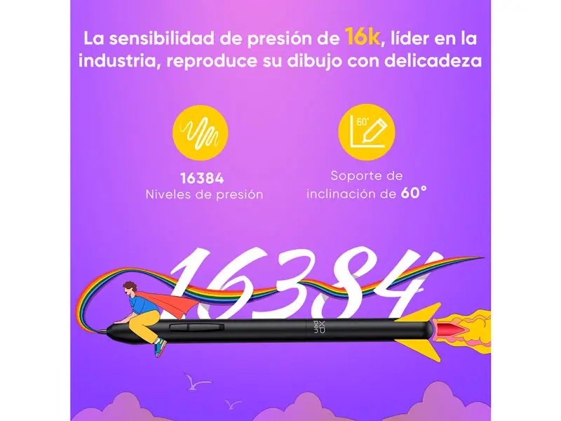 La sensibilidad de presión de 16K, líder en la industria, reproduce su dibujo con delicadeza