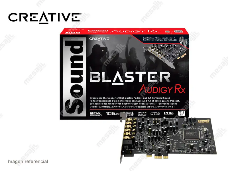 Sound Blaster Audigy Rx es una moderna tarjeta de sonido que representa la actualización perfecta desde el audio básico de la placa base al sonido envolvente de cine multisensorial. Con su avanzado conjunto de chips diseñado para procesar nuestro legendario motor de reverberación EAX, los usuarios de Sound Blaster Audigy Rx pueden contar los días que faltan para probar el estupendo audio multicanal 7.1. Además, ofrece SNR de 106 dB y el Panel de control de Sound Blaster Audigy Rx, un software informático dedicado que permite un control completo de todos los aspectos de tu tarjeta de sonido.