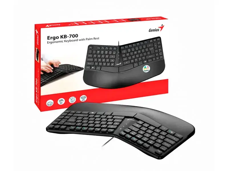 El Teclados Genius Ergo KB-700, con su diseño de onda dividida diseñado para promover la colocación natural de la mano y aliviar la tensión muscular en el área del antebrazo, la muñeca y el hombro, está diseñado para quienes buscan teclados ergonómicos y soluciones de escritura fluida.