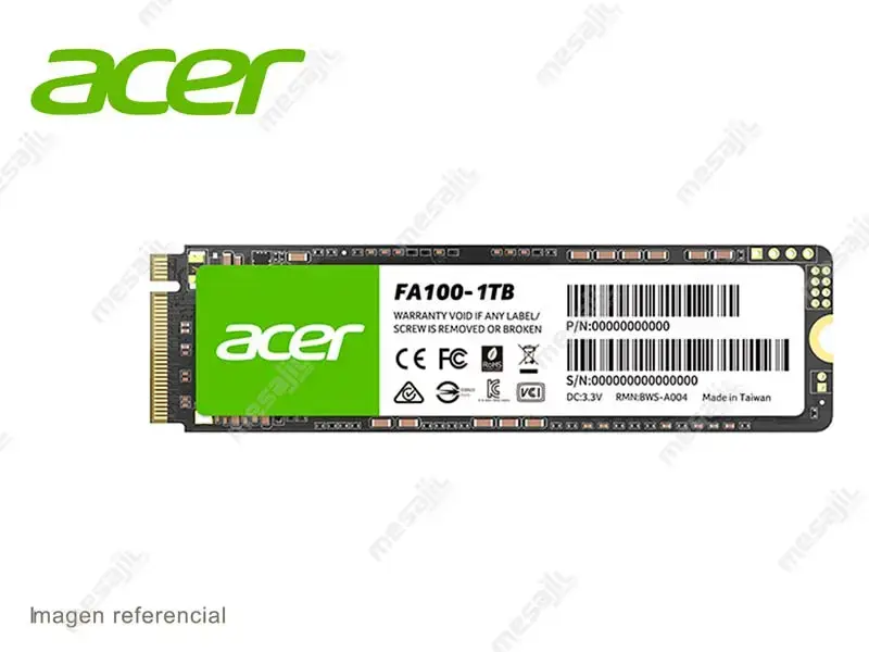 Part number: BL.9BWWA.120Unidad de Estado Solido Interno M.2 1TB Acer FA100 PCIe Gen3 NVMe SSD