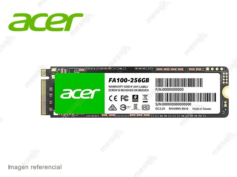 Part number: BL.9BWWA.118Unidad de Estado Solido Interno M.2 256GB Acer FA100 PCIe Gen3 NVMe SSD